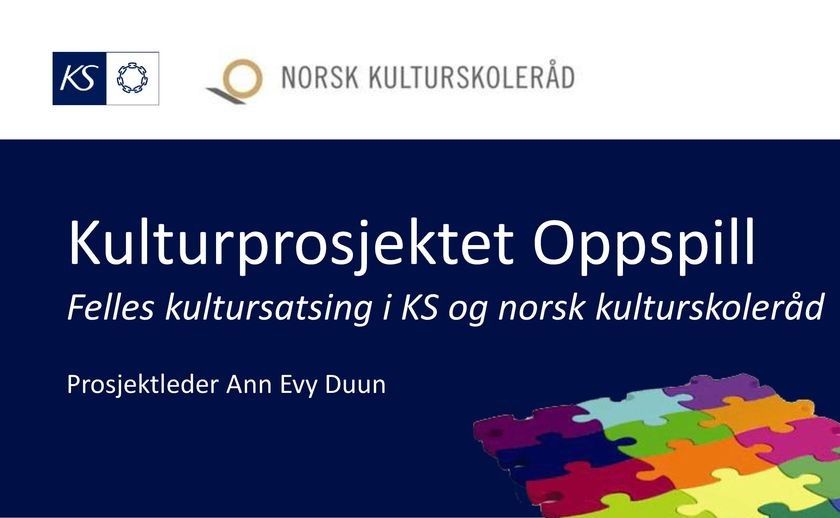 KS og Norsk kulturskoleråd har i en toårsperiode samarbeidet om felles kultursatsing; Kulturprosjektet Oppspill. KS’ landsting vedtok i 2016 at KS skal styrke sin organisasjon innen kultur. Prosjektet har derfor lagt stor vekt på å kartlegge og identifisere kommuner og fylkeskommuners behov på kulturfeltet.