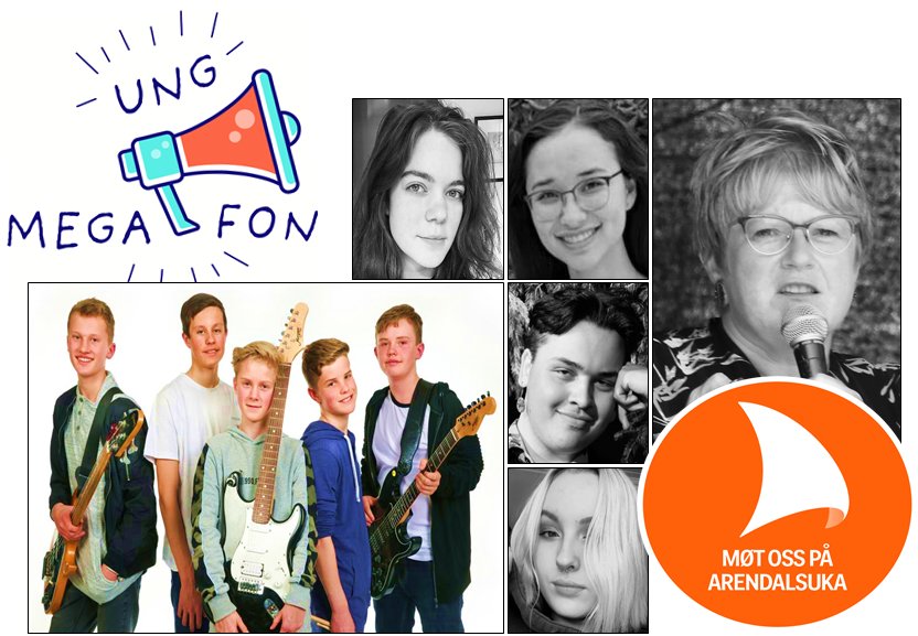 På «Ung megafon – Unge artister og kunstnere» kan du oppleve aktuelle, unge artister og kunstnere på Arendals torgscene. Uttrykkene spenner fra klassisk til rock, fra slampoesi til heftige danserytmer.