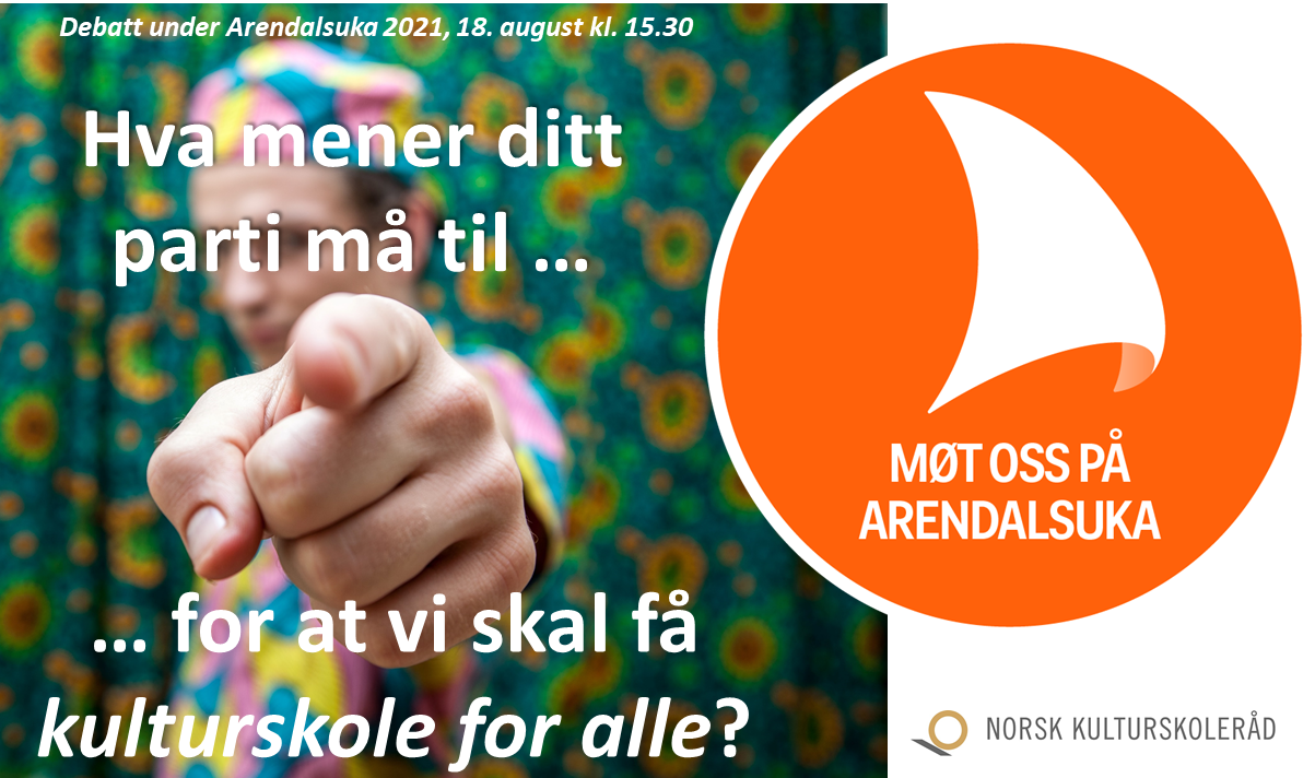 Dette blir da også hovedspørsmålet når Norsk kulturskoleråd onsdag 18. august kl. 15.30 inviterer til politisk paneldebatt i Arendal. Invitasjoner er nylig sendt til samtlige av dagens stortingspartier, og flere har allerede varslet sin deltakelse på kulturskoledebatten. I tillegg til politikere vil Helga Pedersen, styreleder i Norsk kulturskoleråd, delta i debatten.