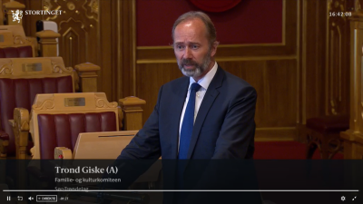 Merk: Behandingen av barne- og ungdomskulturmeldinga begynner på 15:43:50 og slutter på 17:25:05.