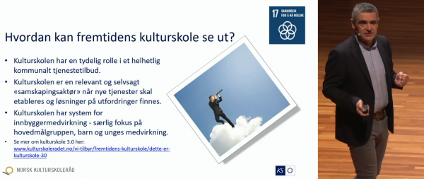 I foredraget «Når lederen blir FN-ambassadør» synliggjorde Lasse Arntsen sammenhenger mellom kunst- og kulturfag, sosial bærekraft og samskaping. I lys av dette drøftet han konsekvensene dette har for lederrollen.