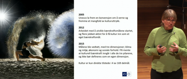 – Det er viktig å se på hvilke ressurser som fins i kultur- og oppvekstfeltet som kan gi gode løsninger for bærekraftige samfunn. God utdanning, god helse, deltakelse, samhandling og kreativitet er viktige ressurser når tankesett skal utvikles og treffsikre løsninger skal utvikles. Vi må dra lasset sammen, både på tvers av fagområder og vi må se på løsninger i samspill for best mulig bærekraft på alle områder, sier Kristin Geiring.