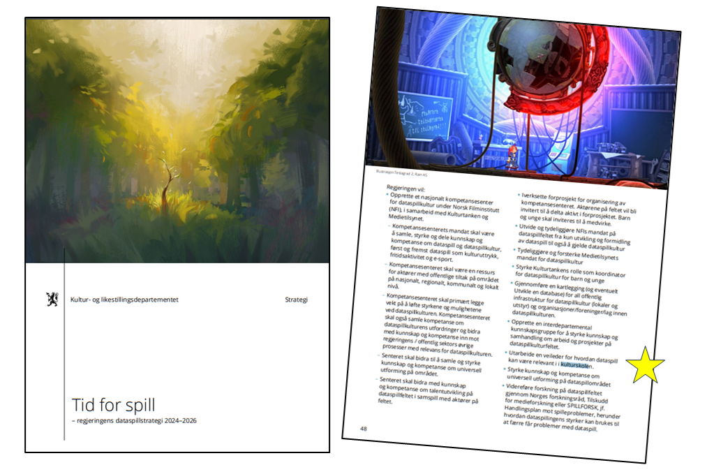 Utarbeide en veileder for hvordan dataspill kan være relevant i kulturskolen. Det er ett av mange tiltak regjeringa har med i sin nye dataspillstrategi, «Tid for spill – regjeringens dataspillstrategi 2024–2026», som ble lansert 14. desember.