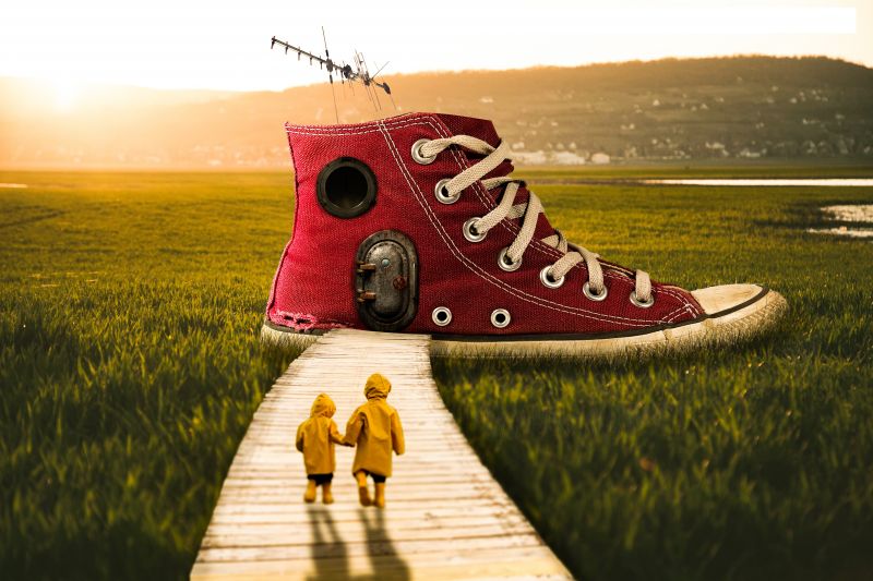 – Broen og barna i bildet symboliserer meg og min tvillingbror som alltid er på veien sammen. Vi er på vei mot skoen, fordi skoen symboliserer hjemmet vårt, altså vårt "Sweet home". Døren symboliser vår vei videre, fordi vi er i "samme sko" uansett hva som skjer, forteller Peter.