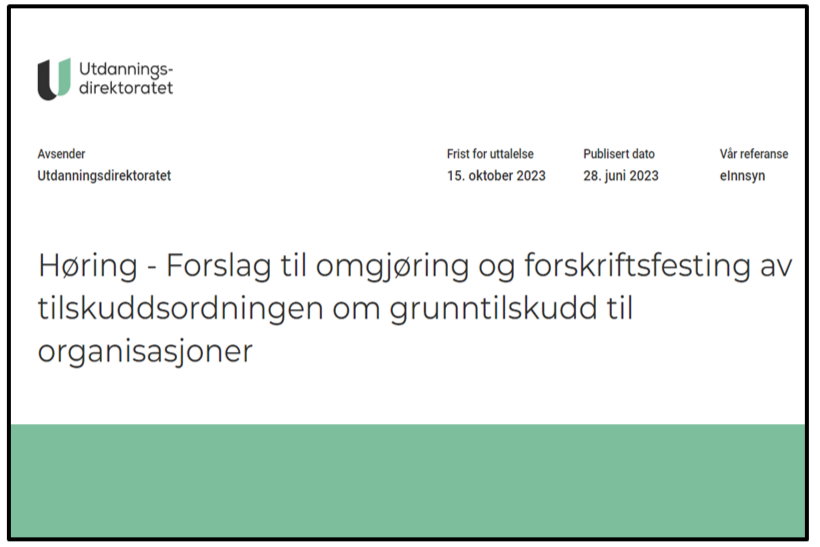 Kunnskapsdepartementet ønsker å gjøre om tilskuddsordningen Grunntilskudd til organisasjoner og foreslår å gjøre tilskuddet søknadsbasert. Kulturskolerådet finner forslaget problematisk å støtte i sin helhet. Blant annet fordi det foreslås at søkerne må være registrert i Frivillighetsregisteret samt at målgruppa for ordningen skal innsnevres.