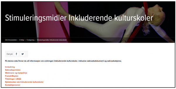 I forbindelse med ordningen Inkluderende kulturskoler 2.0 vil Norsk kulturskoleråd gjennomføre webinar med informasjon om ordningen, der det kan søkes på stimuleringsmidler til utvikling av kommunale kulturskolenes fordypningsprogram over de tre neste årene. Samme webinar kjøres flere ganger i august og september, slik at alle skal få sjansen til å få det med seg.
