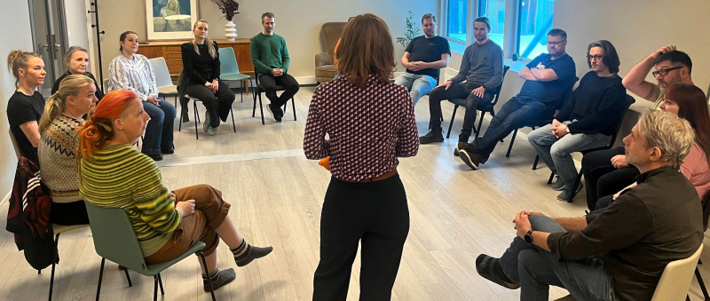 Deretter fikk lærerne mulighet, gjennom et gruppearbeid, til å utforske hvordan justeringer i egen praksis kan bidra til bærekraftig utvikling av trondheimssamfunnet. Mjøen stilte gode spørsmål og fikk lærerne til å reflektere over det faglige arbeidet de legger ned i kulturdag. Tenker en egentlig over sin rolle utover det de gjør i klasserommet, og verdien av den relasjonen man oppnår med barn og unge gjennom skapende fag? Kan kulturdag være betydningsfull for barn og unges selvbilde, og videre, kan den bidra til livsmestring, bedre psykisk helse og å forebygge utenforskap?