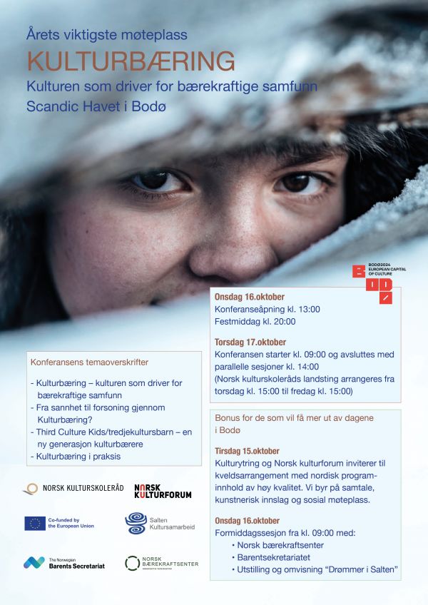 Konferansen arrangeres på Scandic Havet i Bodø, og altså i forbindelse med Bodø2024. Her inviteres hele Norden til en feiring av lokal kulturarv og lokal kulturbæring. Gjennom en rekke foredrag, parallelle sesjoner og panelsamtaler vil deltakerne få nye perspektiv og kunnskap om kulturens rolle for bærekraftige samfunn.