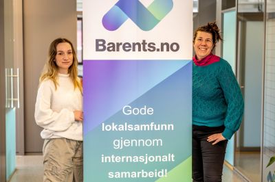 På bildet: Elizaveta Vassilieva (t.v.) og Marit Egholm Jacobsen, henholdsvis ungdomsrådgiver og konstituert daglig leder i Barentssekretariatet.