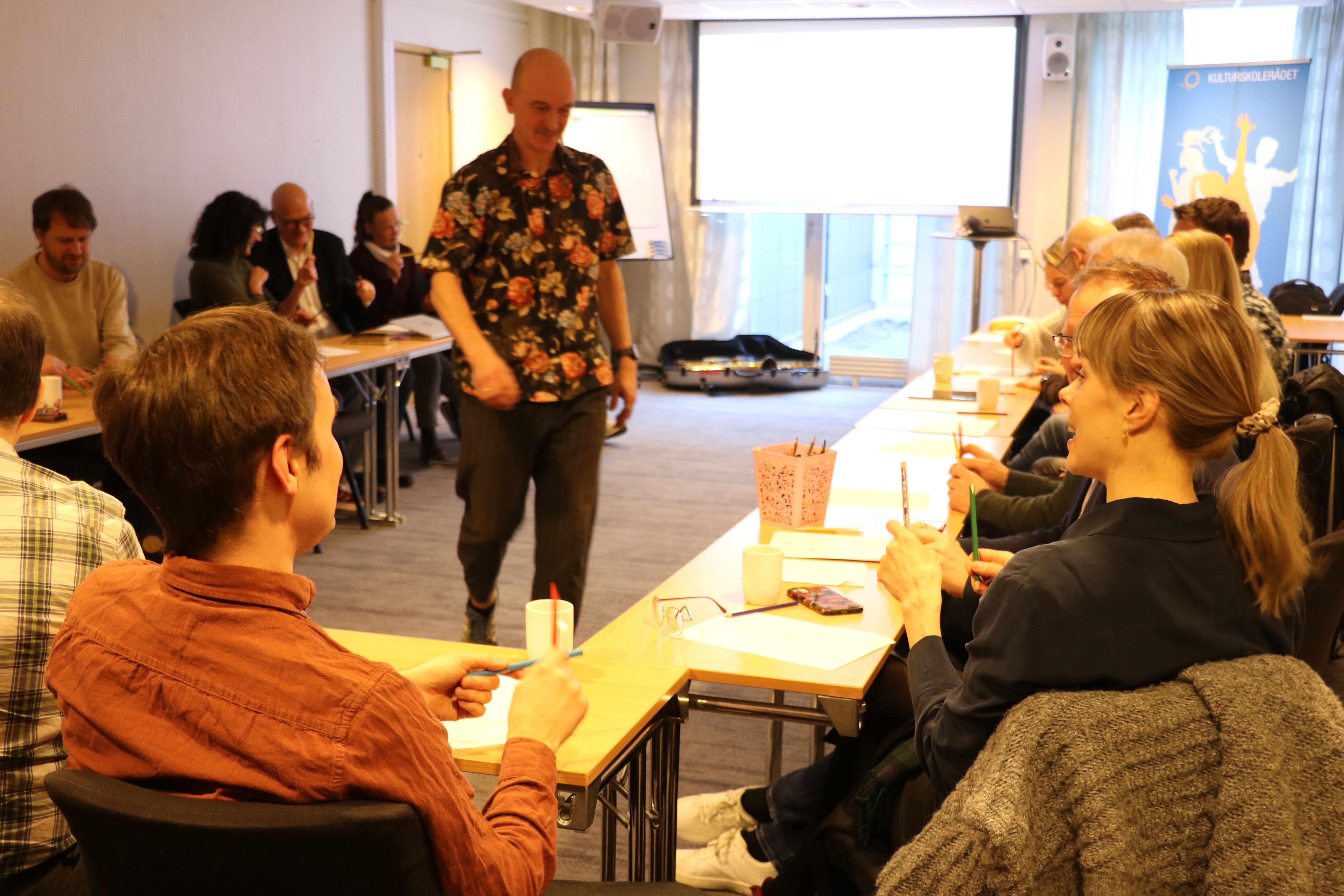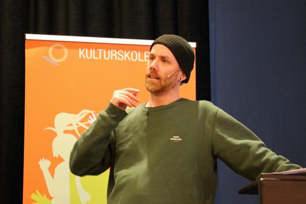 Kunstneren Ståle Gerhardsen holdt foredrag på Fordypningskonferansen 2025, som ble arrangert i Stjørdal i dag. Konferansen rommet både foredrag, panelsamtale, parallelle sesjoner og kunstneriske innslag.