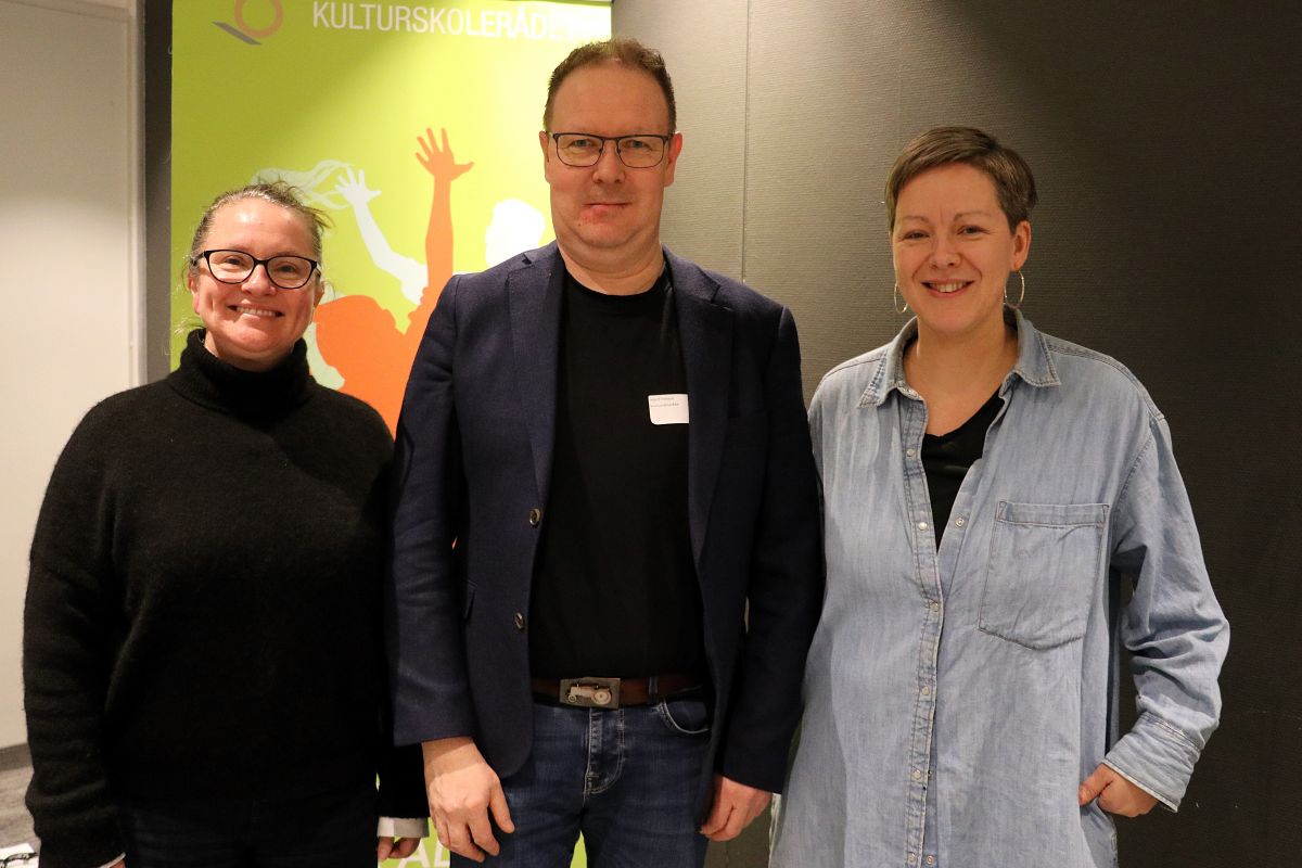 Sparebankstiftelsen DNB er en viktig støttespiller for ordningen Inkluderende kulturskoler, som Kulturskolerådet administrerer. Her Anne Ekenes (t.v.) og Eline Melgalvis fra stiftelsen sammen med rådgiver Ingolf Dragset i Kulturskolerådet. |