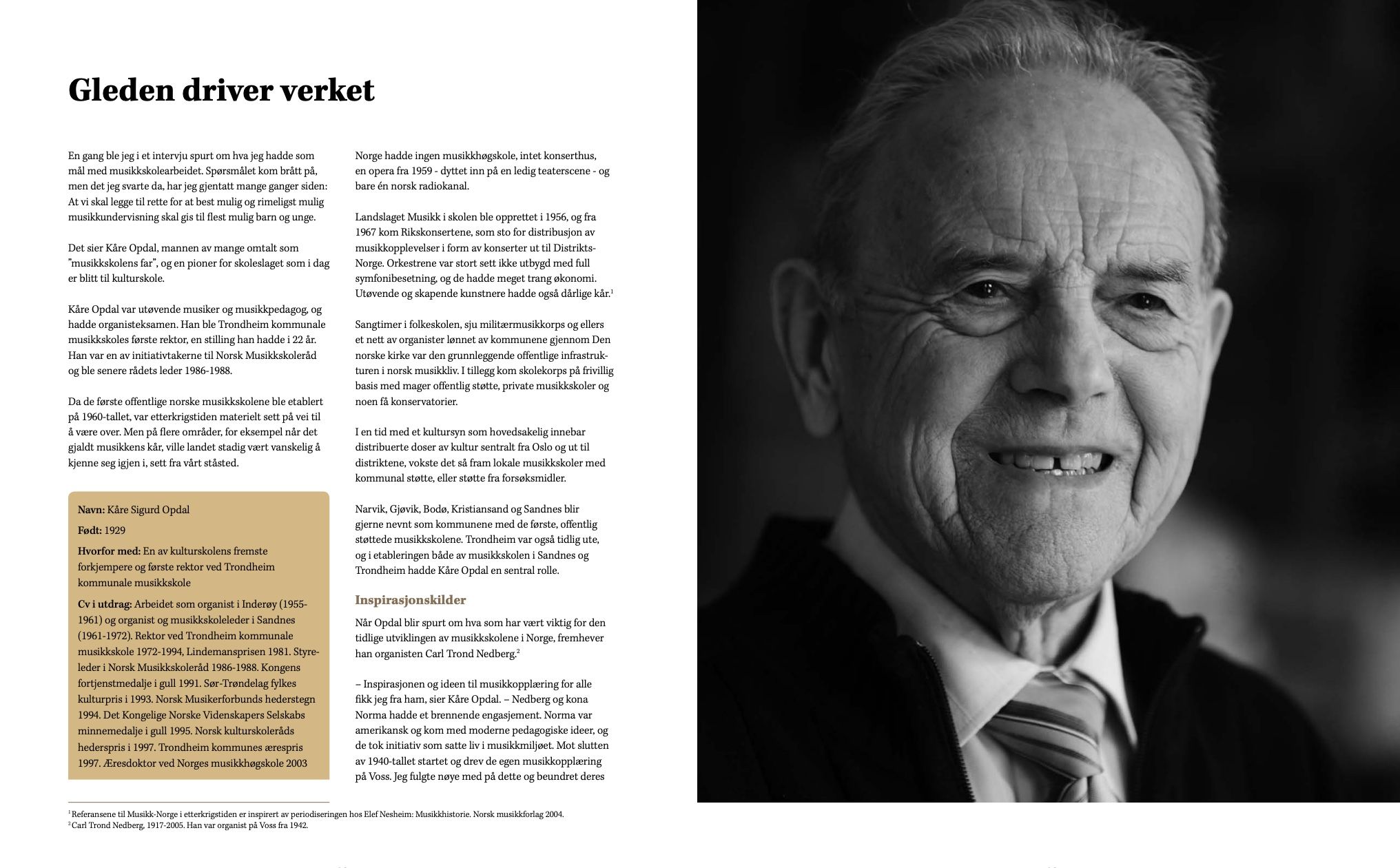 Faksimile fra intervjuet med Kåre Opdal i Kulturskolerådets jubileumsbok fra 2013. Tekst: Tone Mørkved / Foto: Thor Nielsen.
