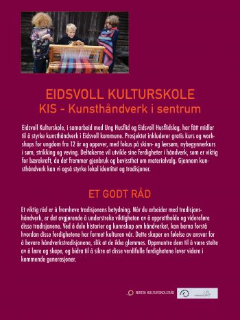> Håndverksløftet i kulturskolen: Søknadsportalen åpen