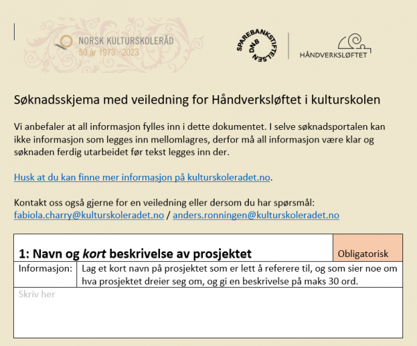 Hvis Håndverksløftet i kulturskolen også i 2026 skulle bli tildelt midler fra Sparebankstiftelsen DNB, vil det bli prosjektstart i januar eller mars 2027. Prosjektperioden vil da strekke seg til og med 2029.